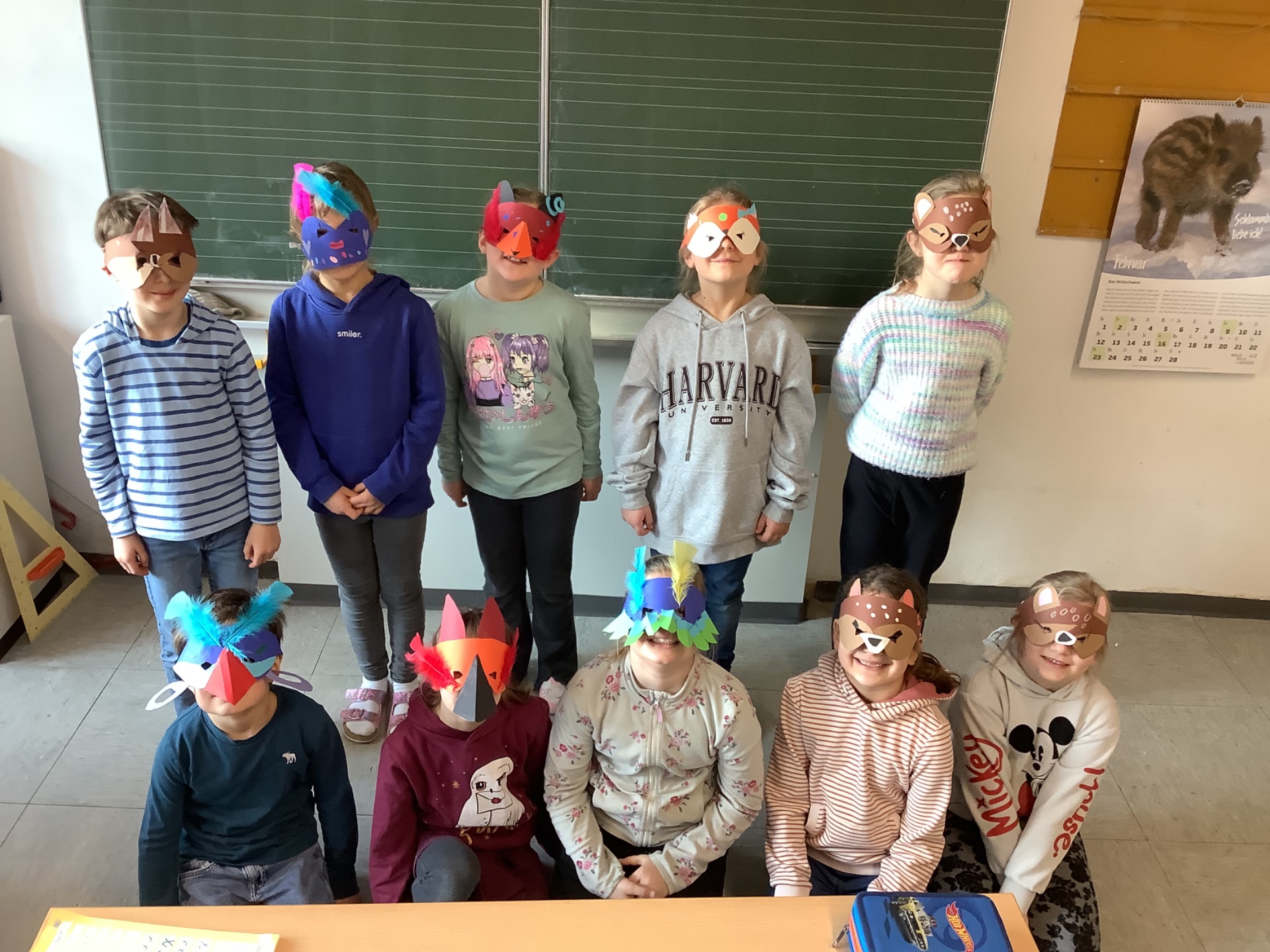 Lustige Faschingsmasken bastelten die Kinder in WG bei Frau Langsteiner. Wer steckt wohl hinter welcher Maske?