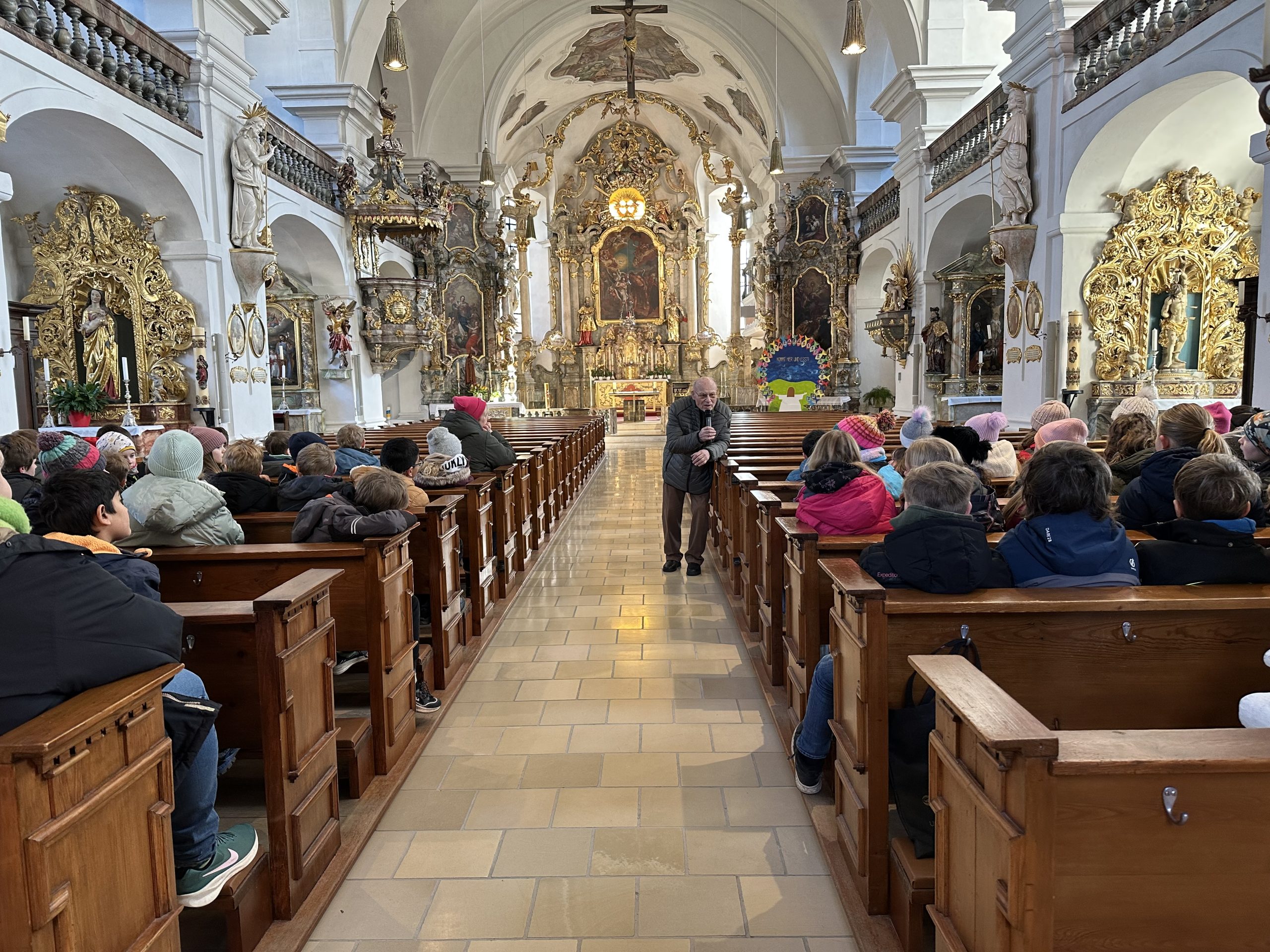 Am vergangenen Montag machten wir eine spannende Entdeckungsreise durch die Stadtpfarrkirche Auerbach. Herr Graf, der selbst der ehemalige Dritt- und Vierklasslehrer einer der derzeitigen Vierklasslehrerinnen war, begeisterte alle Kinder mit seinem riesigen Fachwissen. Hinter jedem Bild, jeder Figur, jedem Kämmerchen und sogar einigen Fliesen steckte eine Geschichte, die durch die Erzählungen von Herrn Graf wieder lebendig wurde. Besonders interessant fanden die Kinder die Ausführungen über die zwei Schatzkammern, hinter deren Mauern viele verschiedene kirchliche Kostbarkeiten aufbewahrt werden. Wir danken Herrn Graf für seine unermüdliche Geschichtsarbeit und seine kostbare Zeit. (M.S)