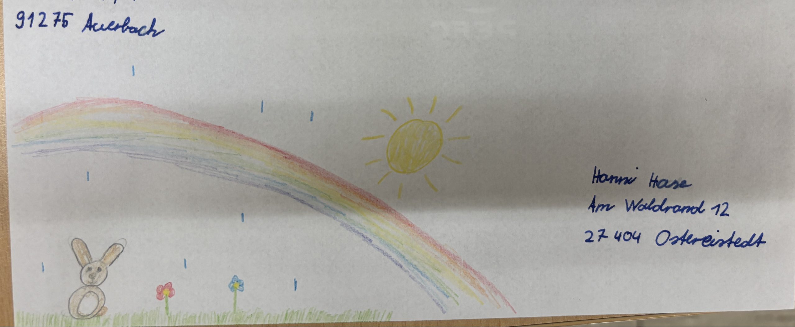 Nachdem die Briefkuverts beschriftet und liebevoll gestaltet waren, wurden die Briefe losgeschickt. Die Freude war groß, als man einen Antwortbrief aus Ostereistedt bekam. Vielen Dank, lieber Hanni Hase!