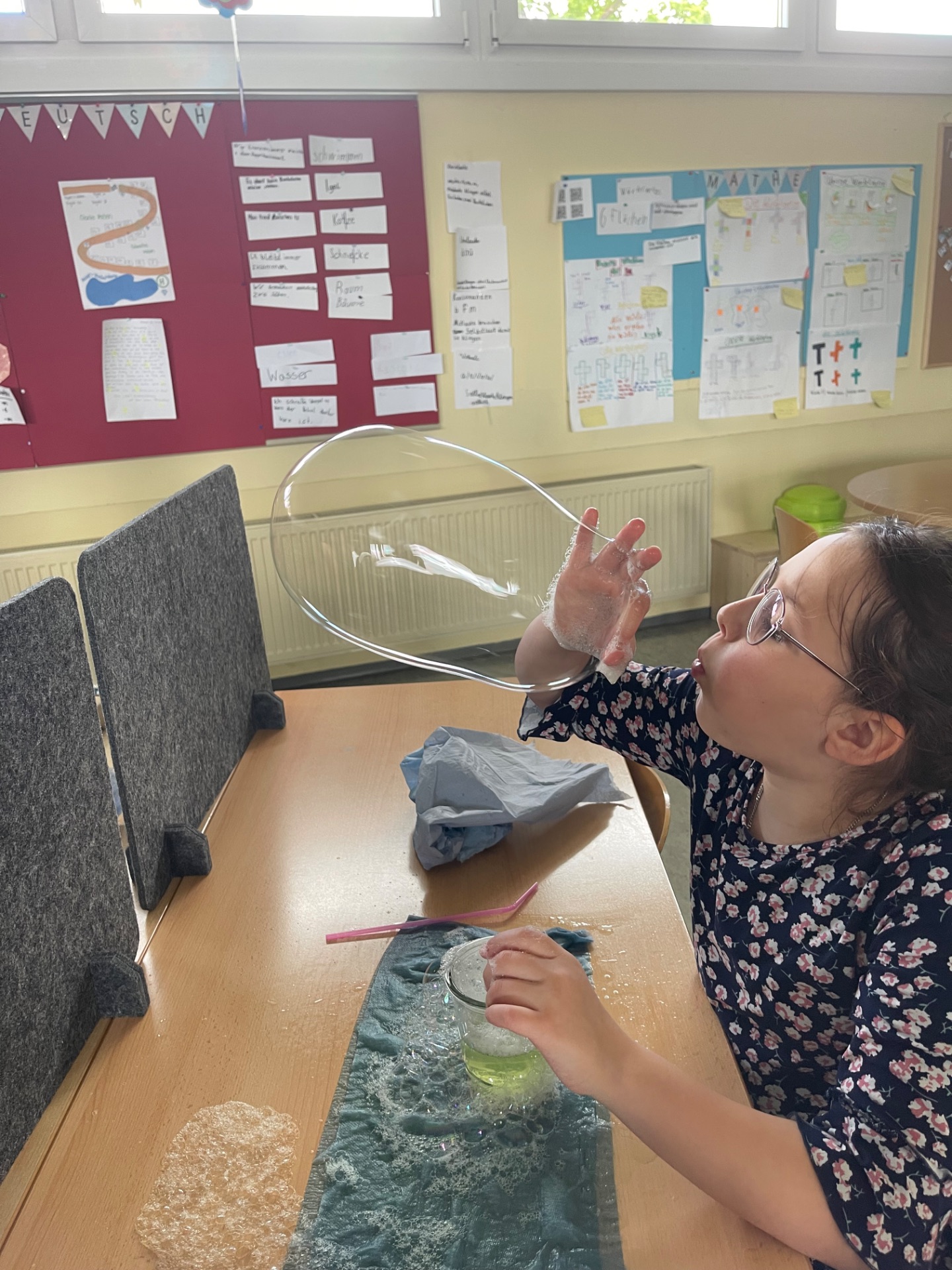 Im Dalton-Kurs drehte sich alles rund ums Wasser. Die Schüler*innen der 3. und 4. Klasse erforschten in spannenden Experimenten die besonderen Eigenschaften dieses Elements. Wir beobachteten die Oberflächenspannung, testeten die Löslichkeit verschiedener Stoffe und untersuchten die Dichte, indem wir schwimmende und sinkende Gegenstände verglichen. Besonders beeindruckend war auch das Experiment zu den Aggregatzuständen, bei dem wir Wasser als Eis, Flüssigkeit und Dampf erleben konnten. Mit viel Neugier, Forscherdrang und jeder Menge Spaß tauchten die Kinder in die Welt des Wassers ein – ein sprudelndes Erlebnis voller Aha-Momente!
