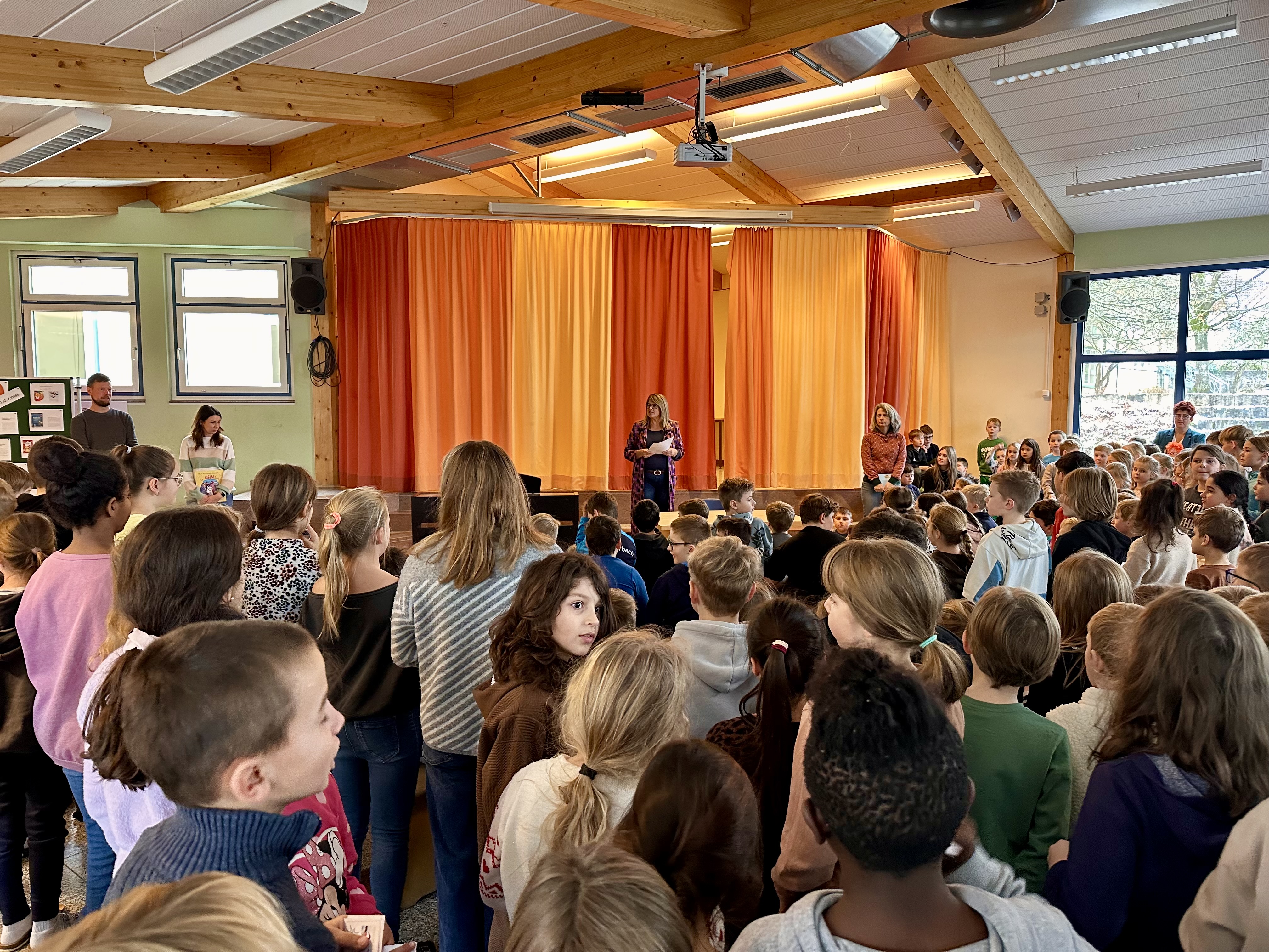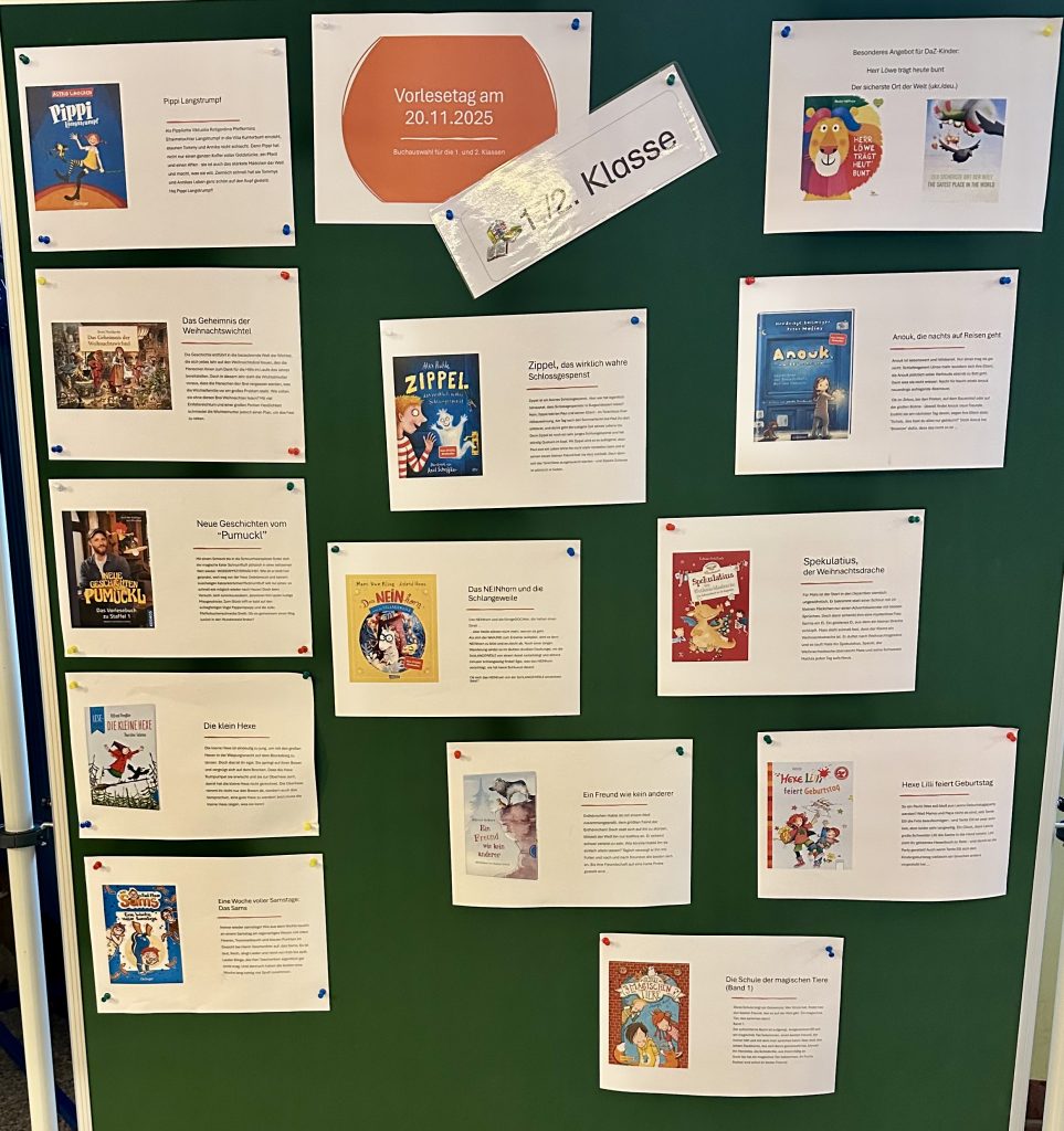 Heute fand an unserer Grundschule eine mittlerweile etablierte Aktion zum bundesweiten Vorlesetag statt. Neben allen Lehrkräften und Mitarbeitenden der Schule beteiligten sich auch einige Gäste. Herr Edtbauer aus der Gemeindeverwaltung, Frau Ladikoff und Frau Böhm vom Elternbeirat sowie Frau Bürger, unsere ehemalige Kollegin, lasen spannende Geschichten aus verschiedenen Büchern vor.