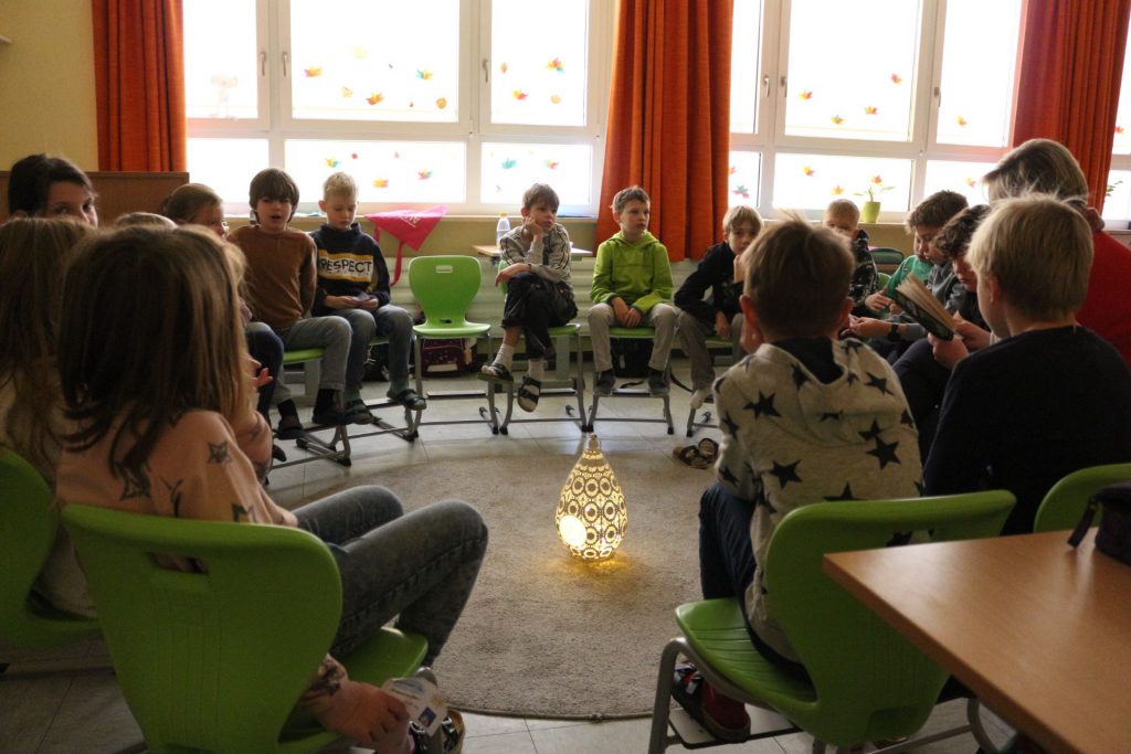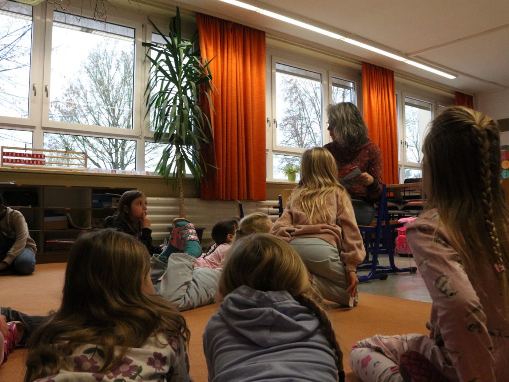 Die Kinder hatten dabei die Möglichkeit, aus einer großen Auswahl selbst zwei Bücher auszuwählen, aus denen ihnen vorgelesen wurde. So konnte jedes Kind entscheiden, ob es lustig, mystisch, weihnachtlich oder rätselhaft werden sollte.