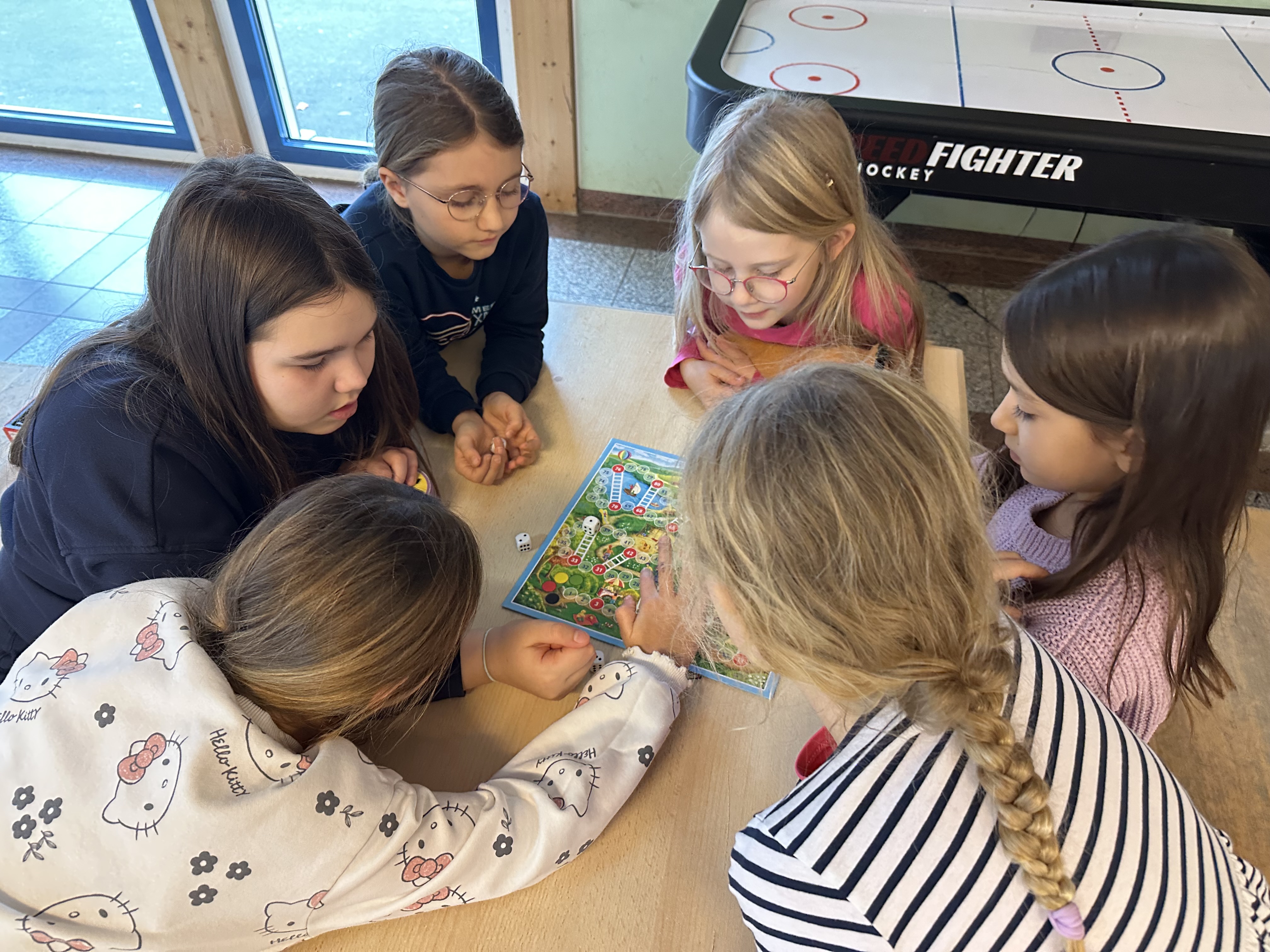 Heute trafen sich die Partnerklassen von Frau Weber und Frau Danninger, um gemeinsam Brettspiele zu spielen. Zuerst probierten die Kinder in gemischten Gruppen unterschiedliche Spiele aus. Schnell wurde deutlich: Spielen macht allen Kindern richtig viel Spaß. Die zwei Schulstunden vergingen wie im Fluge und so mancher hat ein neues Lieblingsspiel entdeckt. Auffällig war, dass besonders die Klassiker wie Uno, Memory und Halli Galli von allen Kindern mit Begeisterung gezockt wurden.