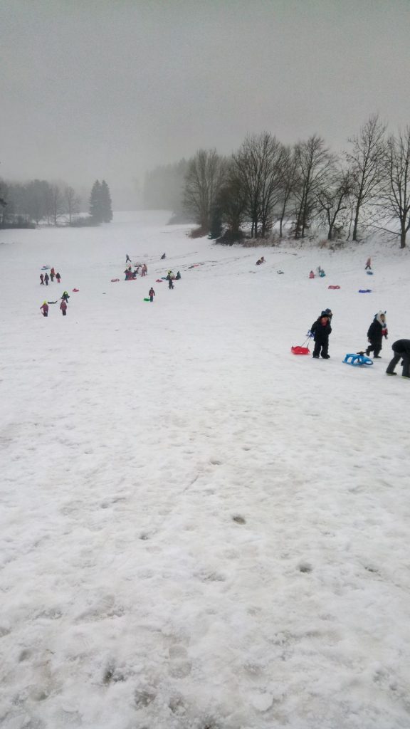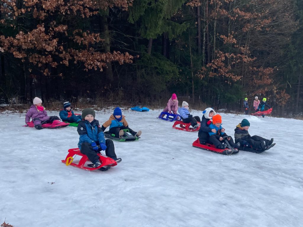 Vielleicht war es der letzte Schnee in diesem Winter und das wollten wir unbedingt noch nutzen. Mit Schlitten bepackt fuhren wir mit dem Bus Richtung Rußhütte und dann ging es bei besten Schneeverhältnissen auch gleich los. Aus der Bahn – jetzt komm´ ich! Gott sei Dank endeten alle Stürze mit einem lachenden, wenn auch schneebedeckten Gesicht. Einige Schüler rollten Schneekugeln, die so groß waren, dass sie mit dem Schlitten transportiert werden mussten. Ein wenig erschöpft, aber ohne Hausaufgabe im Gepäck fuhren wir (leider zu früh) zur Schule zurück. Das war wirklich ein toller Tag