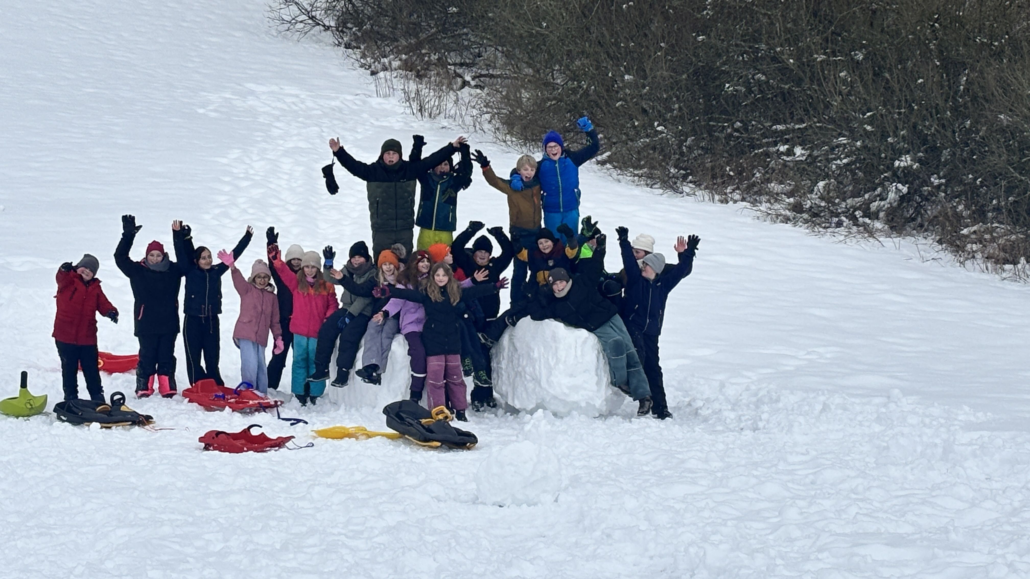 Zwischendurch durfte natürlich auch der Spaß nicht zu kurz kommen: Eine ausgelassene Schneeballschlacht sorgte für viele lachende Gesichter. Mit vereinten Kräften versuchte die Klasse außerdem, einen Riesenschneemann zu bauen – ein ambitioniertes Projekt, das mindestens genauso viel Teamarbeit wie Muskelkraft erforderte.