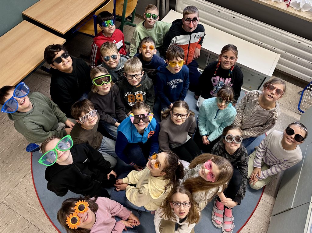 Am Donnerstag wurde es bei uns richtig bunt – denn unsere Schülerinnen und Schüler durften ihre kreativsten, verrücktesten und originellsten Brillen mit in die Schule bringen. 🎉👓