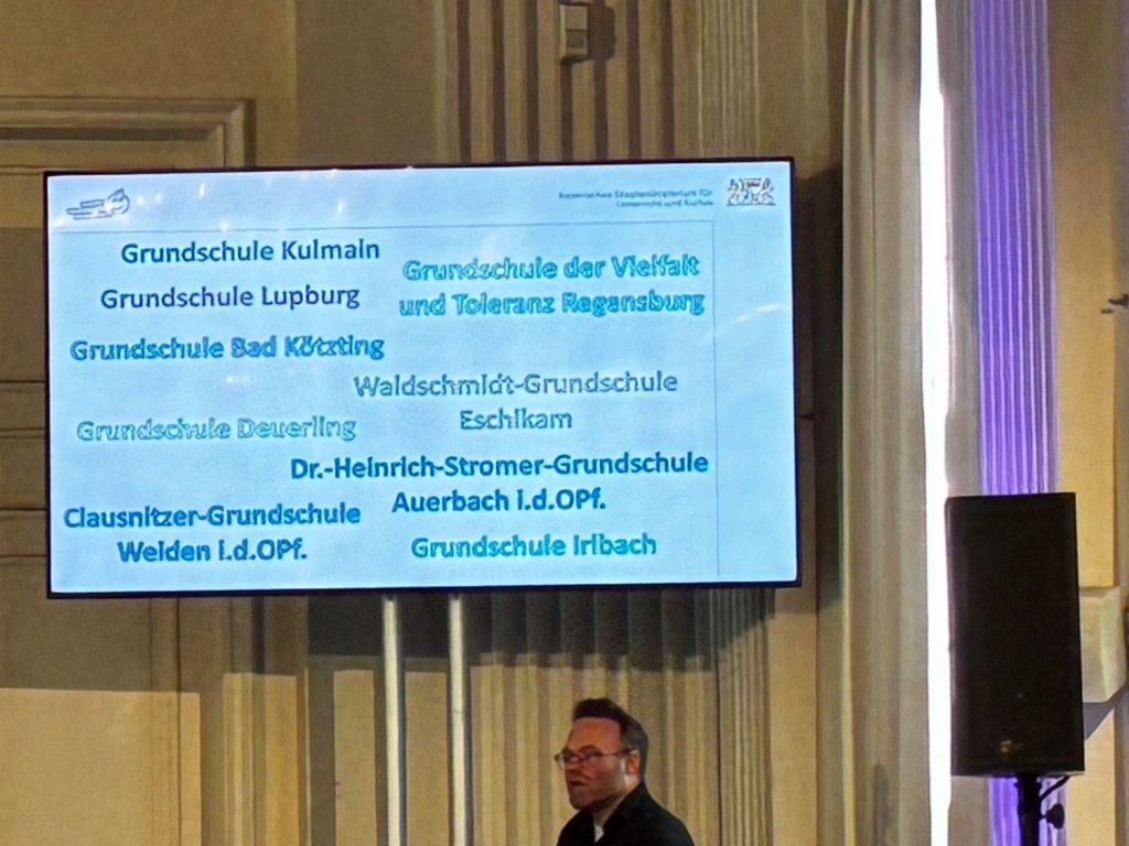 Die Dr.-Heinrich-Stromer-Grundschule darf sich erneut über eine besondere Würdigung freuen: Zum zweiten Mal in Folge wurde sie als „Musikbegeisterte Grundschule“ ausgezeichnet. Damit gehört sie zu den 100 Schulen aus ganz Bayern, die in diesem Jahr in München geehrt wurden.