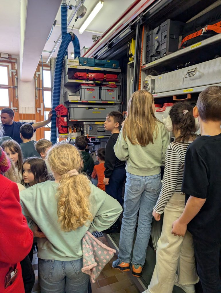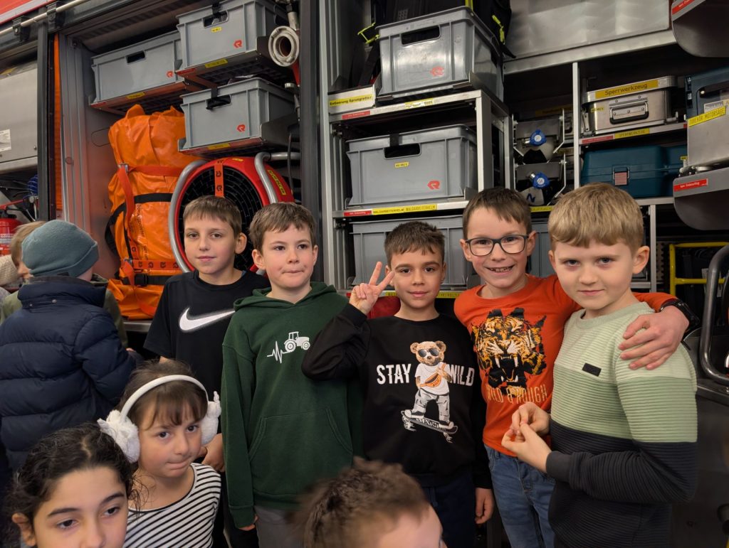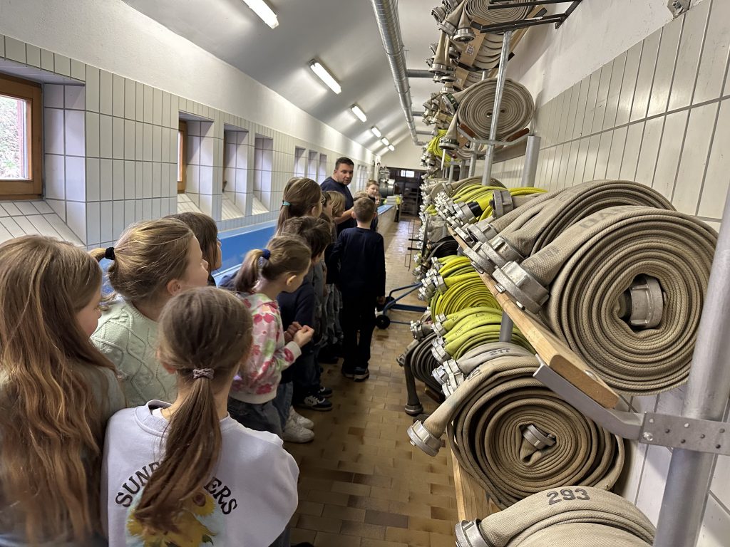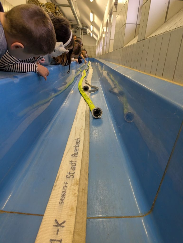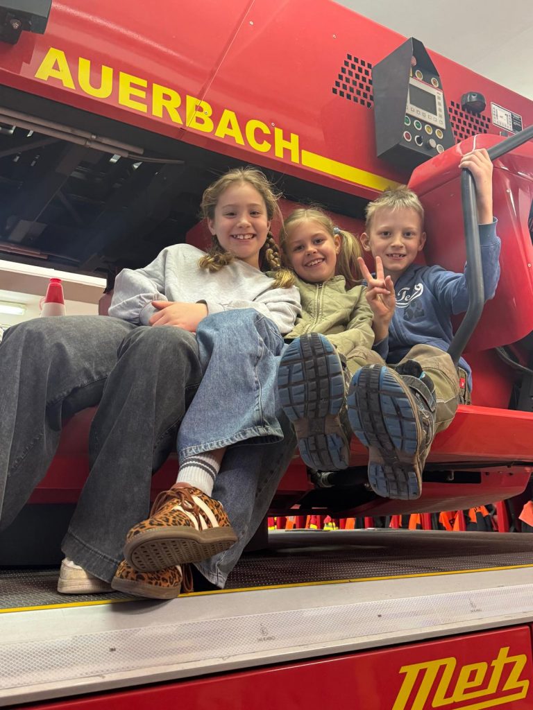 Heute war ein besonderer Tag bei der Dr. Heinrich-Stromer-Grundschule in Auerbach: die Feuerwehr öffnete ihre Türen für die Drittklässler. Herr Sporrer erklärte den Kindern die Arbeit der Feuerwehr und zeigte, welche Aufgaben auch fernab von Einsätzen zu erledigen sind. Die Schülerinnen und Schüler durften die großen Einsatzfahrzeuge bestaunen und erfuhren, welche Geräte und Werkzeuge bei Bränden oder Unfällen zum Einsatz kommen. Besonders spannend war der Einblick in die Feuerwehrautos, die sonst nur im Einsatz zu sehen sind. Der ein oder andere Lernende hat es sich hinter dem Steuer bereits gemütlich gemacht. Neben dem Trocknungsturm konnten die Drittklässler auch die längste Badewanne Auerbachs begutachten, die Waschstraße, in der die Schläuche gesäubert werden. Ein besonderes Highlight war die Rückfahrt zur Schule in den zwei Einsatzwägen. Als krönenden Abschluss gab es mit perfektem Timing am Ende des Besuchs einen echten Alarm – was für ein Zufall. Das erlebt man wahrlich nicht alle Tage.